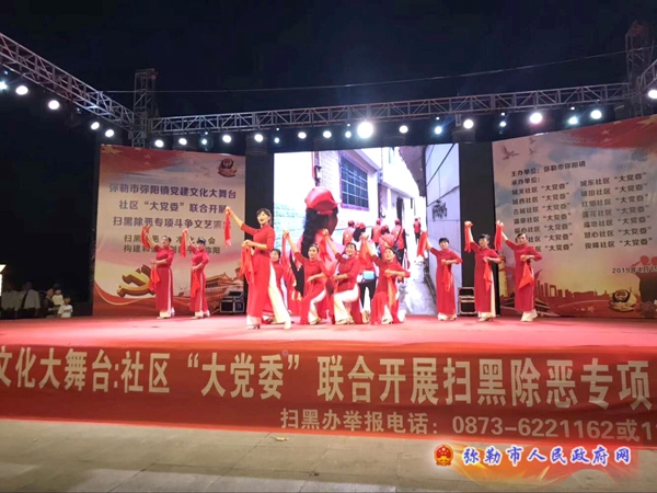 4月19日晚, 由弥勒市弥阳镇主办,14家社区“大党委”73家成员单位联合在红河水乡开展以“扫黑除恶、净化社会、构建和谐、创建平安弥阳”为主题的扫黑除恶专项斗争文艺演出活动。