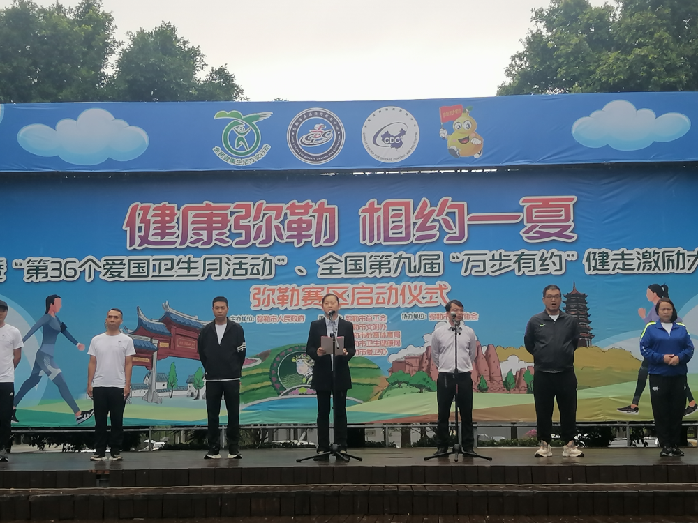 5月9日,弥勒市举行“健康弥勒 相约一夏”暨“第36个爱国卫生月活动”、全国第九届“万步有约”健走激励大赛启动仪式,此次赛事共设立“精英赛”和“拓展赛”两个赛制,在全市范围内开展为期100天的团队健走竞赛。活动由弥勒市人民政府主办,弥勒市总工会、市委文明办、市教体局、市卫健局、市爱卫办承办。来自全市各机关企事业单位和乡镇(街道)的37支队伍422名队员参加活动。弥勒市人民政府副市长李静茹出席仪式并宣布大赛启动,李静茹指出,科学健走是增强体质、预防慢病最简单、最有效的健身方式,希望全市各参赛队充分发挥党政机关、企事业单位的“团队”引领作用,带动更多人投身全民健身、人人健走的浪潮之中,真正让健康理念和健康行为播撒在弥勒经济社会发展的每个角落,让“有一种叫云南的生活”成为弥勒老百姓实实在在的幸福。