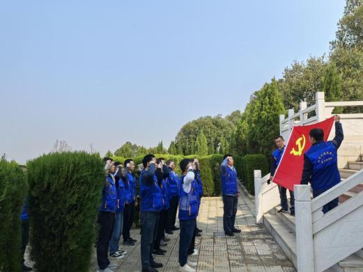 开展宣誓,传承红色精神。在庄严肃穆的氛围中,党员们面向党旗,高举右拳庄严宣誓。誓言铿锵,回荡在陵园上空,激励着大家以先烈为榜样,坚定传承红色基因和赓续革命精神,勇挑重担,践行对党的承诺。