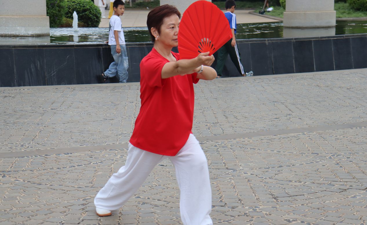走进大门,有很多中老年朋友在锻炼,有的在打太极拳、有的在跳扇子舞,他们穿着统一的服装,动作娴熟,神情专注。还有很多在跳广场舞的叔叔和阿姨,每走一段路都可以遇到不同的广场舞队伍,在旁边观看总有想加入他们的冲动~