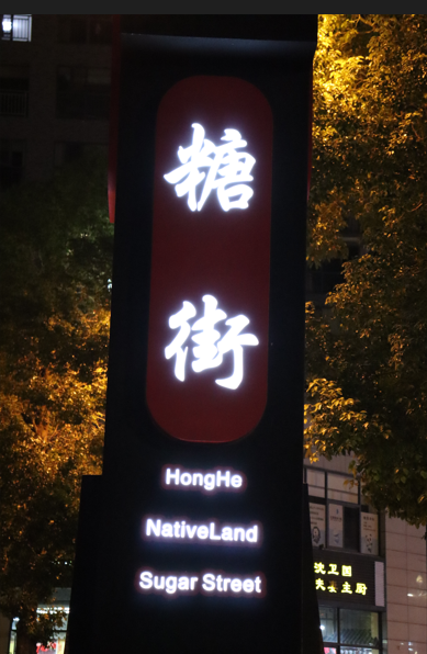 除了糖街外,水乡周围还有很多的商铺,其中以烧烤店和小酒馆居多,每到夜晚,很多年轻人汇集于此。在烧烤店外,撸着串,欣赏着城市夜景、看着川流不息的人群,很多烦恼可以暂且抛之脑后,躁动的心就这样慢慢平息安宁。