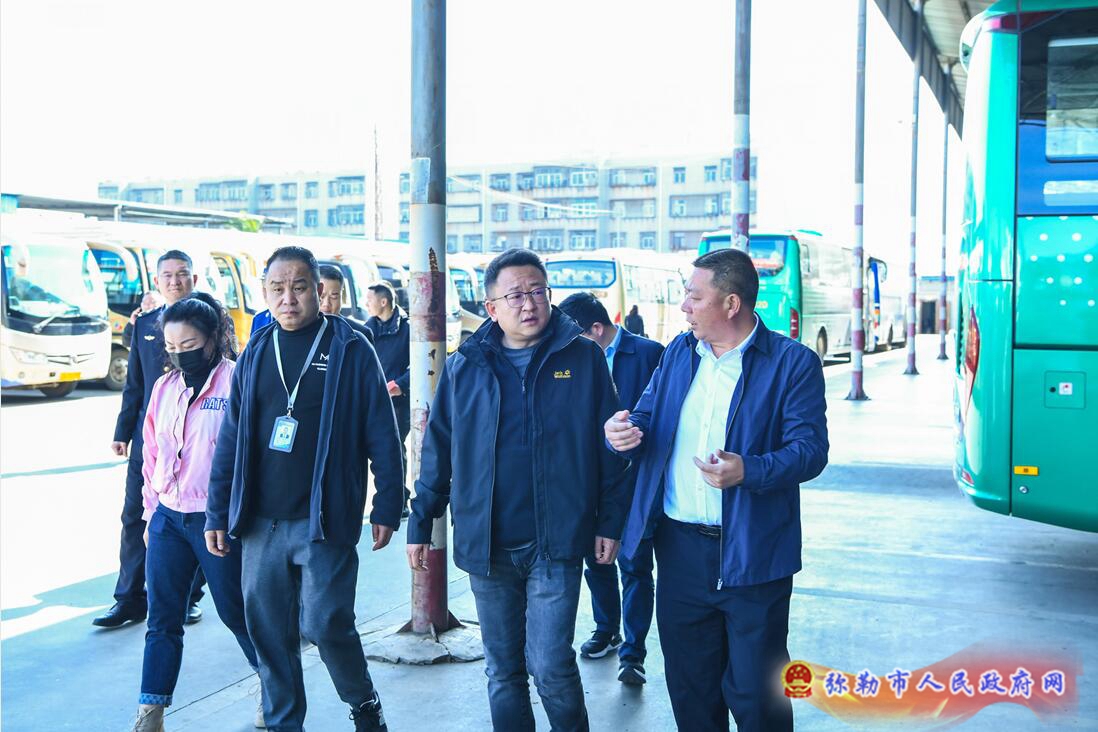 在弥勒汽车客运站,潘金军先后到车站售票厅、候车厅、客车安全例保检查点等地,详细了解客流量、车辆安全监管等情况,细心询问值班人员突发事件应急处置措施,并叮嘱工作人员要增强安全防范意识,认真做好自检自查工作。潘金军强调,客运站是群众出行安全的重要关口,要坚决把好第一道安全关,持续加强日常安全管理和风险隐患排查,加强客运各环节规范管理,从源头上根除隐患,切实保障人民群众出行安全。
