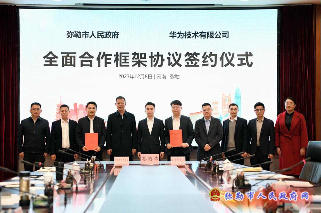 2023年12月8日,弥勒市人民政府与华为技术有限公司举行战略合作框架协议签约仪式。