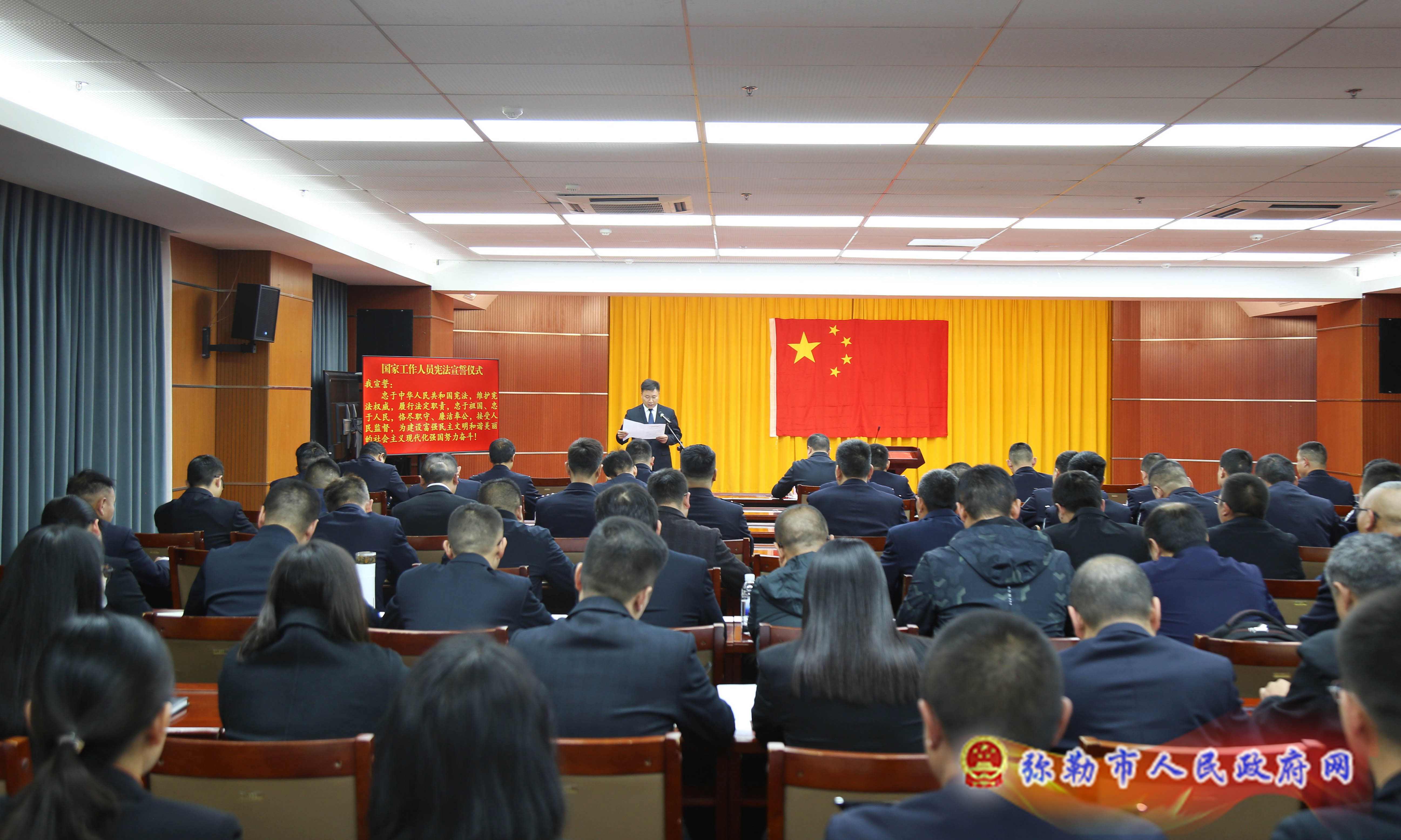 为全面贯彻落实习近平法治思想,弘扬宪法精神,维护宪法权威,12月12日,市人民政府举行国家工作人员宪法宣誓仪式。市政府2023年任命的110名国家工作人员依法进行宪法宣誓。市政府副市长、市公安局局长胡永彬出席宣誓仪式并领誓。