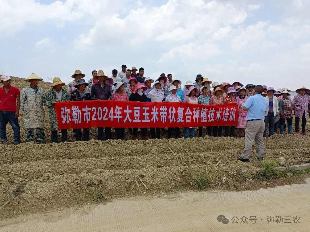 弥勒市2024年推广大豆玉米带状复合种植面积5000亩,市农业农村局专项成立领导小组,由市农技推广中心技术指导组与各乡镇技术力量分别就品种选择、种植模式、施肥、用药、机械化及防灾减灾等开展阶段性技术系列培训,实现县乡村三级联动,种管收全程技术服务,因地制宜指导做好大豆玉米带状复合种植工作,确保技术到户到地。同时,在作物生长的关键时期,组织现场观摩,发放技术资料,使大豆玉米带状复合种植技术家喻户晓,切实提高技术到位率和入户率。