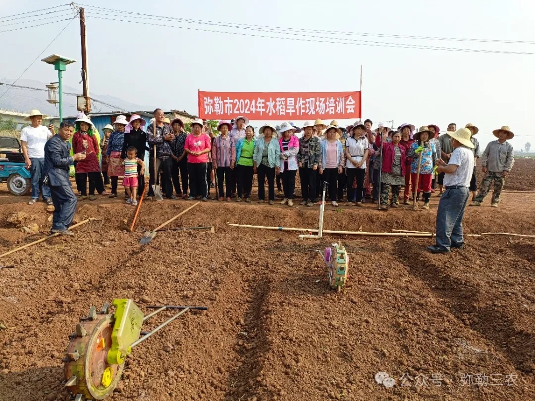 2024年4月12日上午,弥勒市农业技术推广中心联合青园公司在竹园镇阿阳村粮蔬轮作农业科技示范基地举办水稻旱作技术指导和现场培训,高级农艺师普继雄针对水稻旱作栽培技术进行讲授。