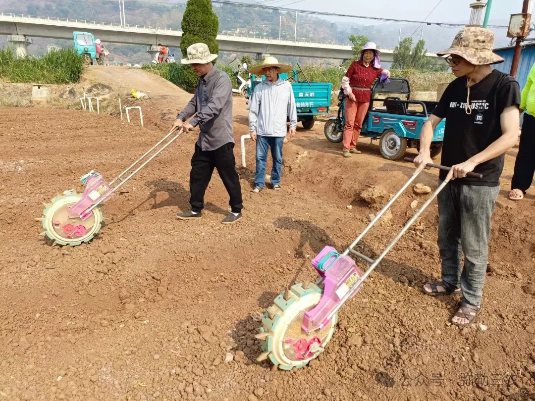 现场答疑环节,发放“水稻旱作优质高效栽培技术推广手册”手册60份,对水稻旱作技术中关键的种植、培肥、除草、防虫、控病等方面进行宣传指导,帮助基地和种植户掌握水稻旱作种植技术、除草技术、病虫害防治、农药使用及土壤肥料的相关技能知识,现场解答群众对水稻旱作的疑问。现场示范环节,技术员为种植户演示水稻播种机操作技术,农户也纷纷进田亲自操作水稻播种机,让农户更直观地掌握水稻旱种技术,这次在粮蔬轮作农业科技示范基地亮相的播种机深受种植户好评,大家对水稻播种机的使用充满了期待。