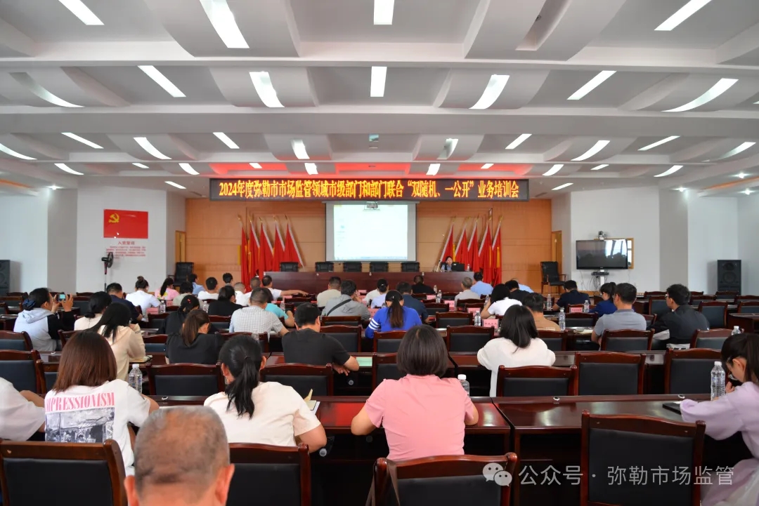 为加快推进“双随机、一公开”监管各项工作任务的顺利完成,近日,全市市场监管领域部门联合“双随机、一公开”监管工作联席会在弥勒市市场监督管理局六楼会议室召开。全市23家联席会议成员单位分管领导及具体抽查工作负责人员共计60余人参加会议。