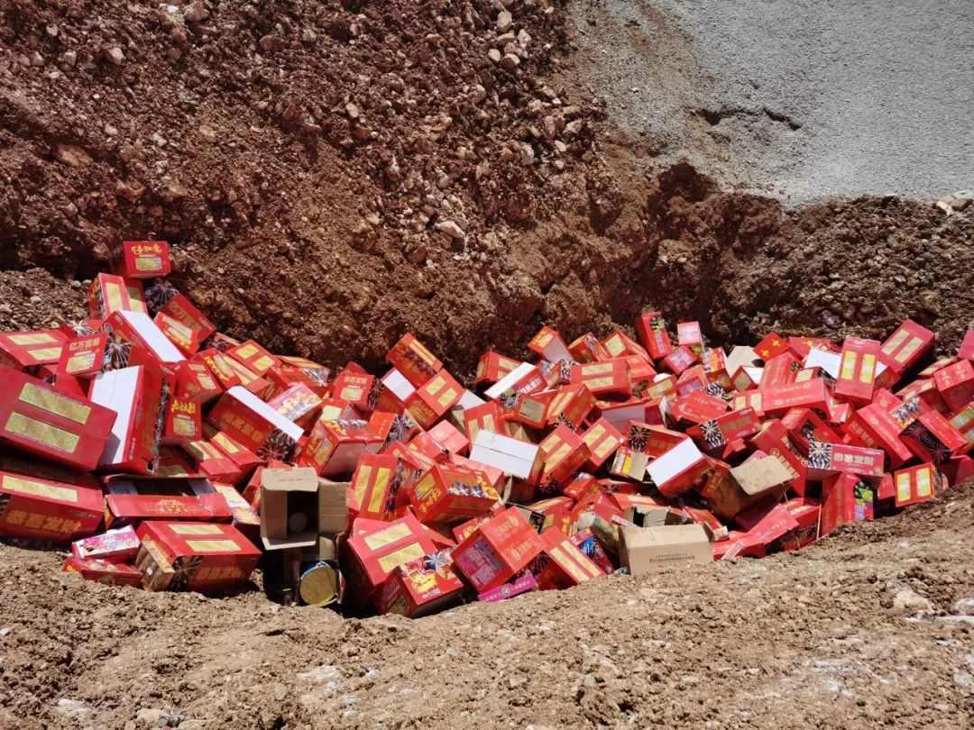 9月5日,弥勒市公安局联合市应急管理局、市土产日杂副食果品有限公司、云南天宇爆破技术有限公司和云南康伯爆破工程有限公司集中销毁了一批非法烟花爆竹。