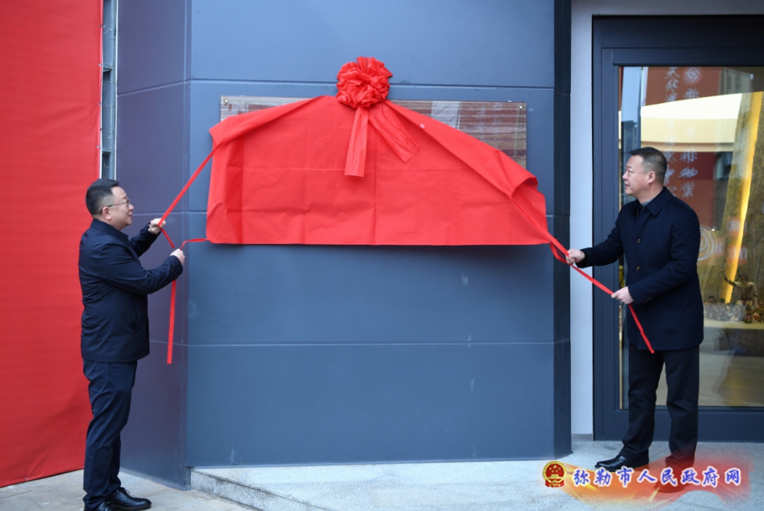 李健、潘金军共同为弥勒市非物质文化遗产传承中心揭牌。