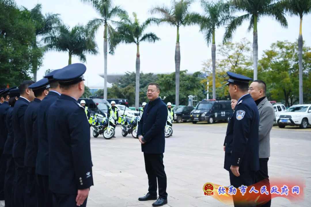 在弥勒市公安局,李健向所有奋战在一线的公安民警、辅警致以新春问候和美好祝福。李健充分肯定了2023年全市公安工作,他指出,过去一年,公安机关坚决贯彻落实市委、市政府安排部署,立足本职、服务大局,在打击犯罪、维护稳定、护航发展等方面作出了积极贡献,为弥勒高质量发展提供了安全保障。李健强调,新的一年,全市公安机关要坚持以习近平新时代中国特色社会主义思想为指导,聚焦全力护航中国式现代化弥勒新实践,以更加饱满的热情和更加务实的作风,为全市经济发展和社会和谐稳定作出新的更大贡献。