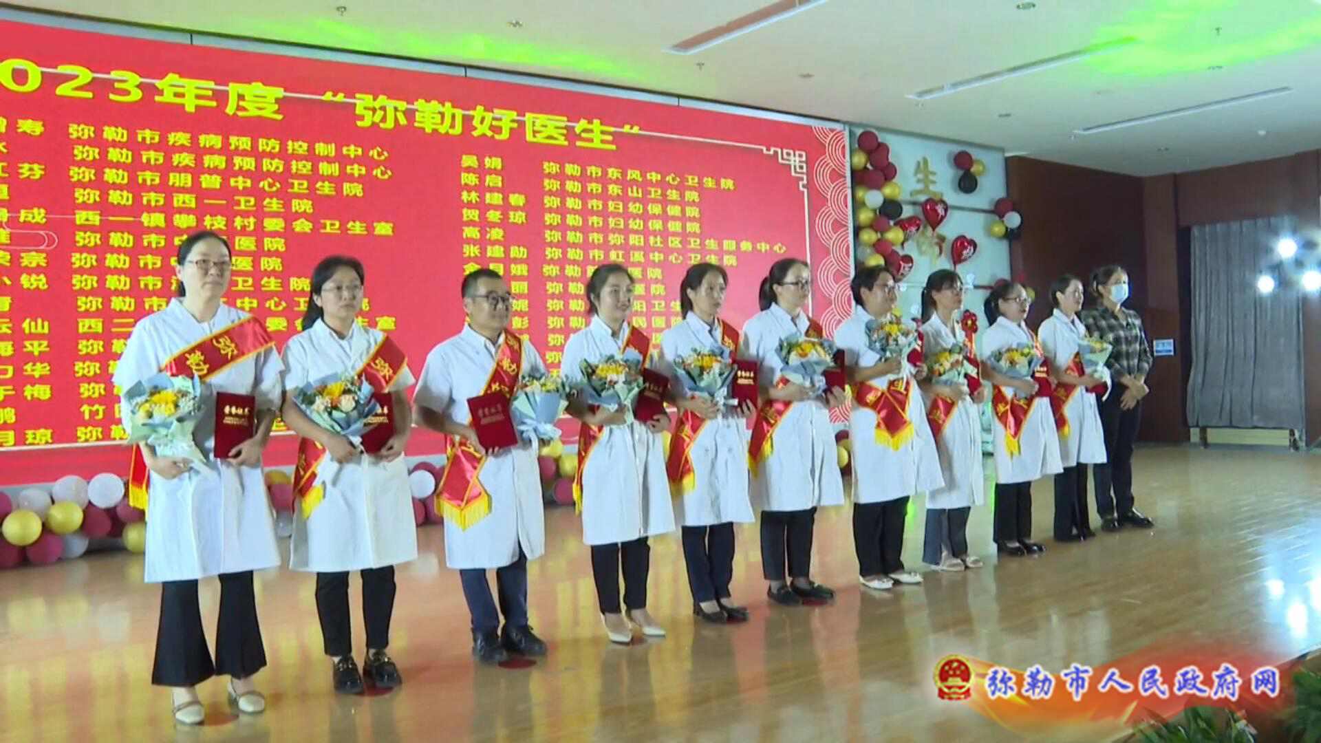 晚会上,参加活动的医务工作者集体重温《中国医师誓词》;参会领导为30名“弥勒好医生”、20名“弥勒好护士”和2023年卫健系统职工运动会部分项目冠军颁奖;3名医务人员分享了个人先进事迹。