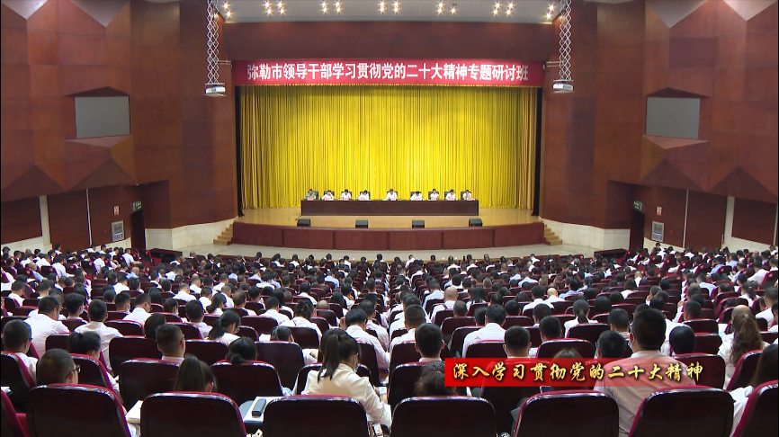 4月23日,弥勒市领导干部学习贯彻党的二十大精神专题研讨班开班。市委书记李健作开班动员暨主题报告。市委副书记、市长潘金军主持开班式。市委副书记田红梅,市人大常委会主任马金荣,市政协主席张茹权出席。