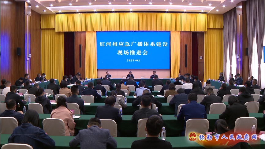 2月12日,全州应急广播体系建设现场推进会在弥勒市召开。州委副书记、州委组织部部长应亥宗,州委常委、州委宣传部部长字振华出席并讲话;州委常委、副州长吕进主持会议。弥勒市委书记李健致辞。市委副书记、市长潘金军,市委副书记田红梅,市委常委、市委宣传部部长黄守良,副市长袁云杰参加会议。