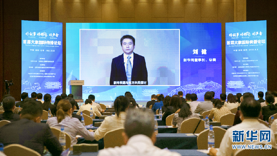 新华网董事长、总裁刘健通过视频方式发表致辞。他表示,首届大象国际传播论坛的举办,是继续讲好云南大象故事、讲好中国故事的新起点,今后的报道中,要寻找更多的情感共鸣,激发不同文化不同文明的价值共振,着力提高国际传播影响力、中华文化感召力、中国形象亲和力、中国话语说服力、国际舆论引导力。
