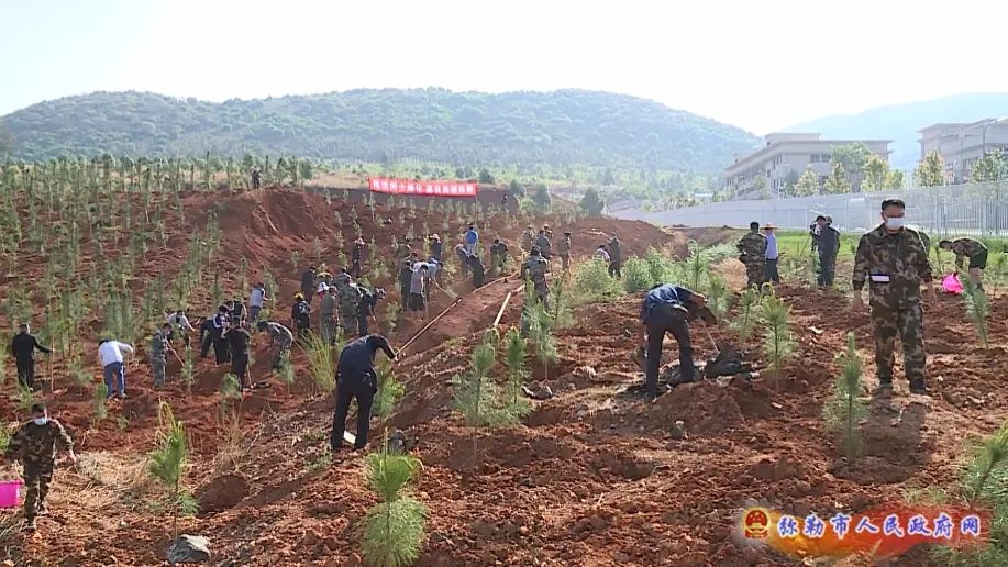 今年植树活动主题为“实施绿美云南行动·谱写绿美弥勒篇章”。上午9时,参加植树的市级领导来到义务植树基地,与市级机关干部等一同扶苗培土、拎桶浇水……经过一番紧张的劳动,新栽种的500余株湿地松树苗迎风挺立,一道道新绿延展成景,将原本空旷的山坡装点得生机盎然。