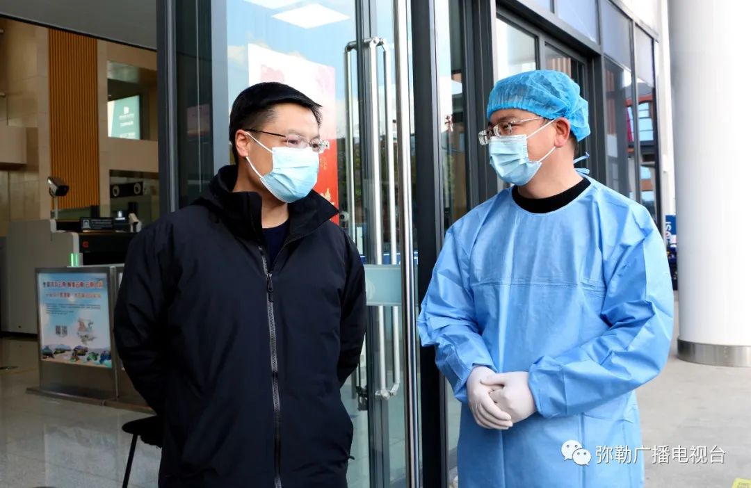 梁凌云一行先后到滇东南农贸市场、博莱玛特超市、湖泉太和影城、弥勒市中医医院、高铁站,实地督查了解疫情防控工作开展情况,研究分析存在的风险隐患,看望慰问了一线工作人员。