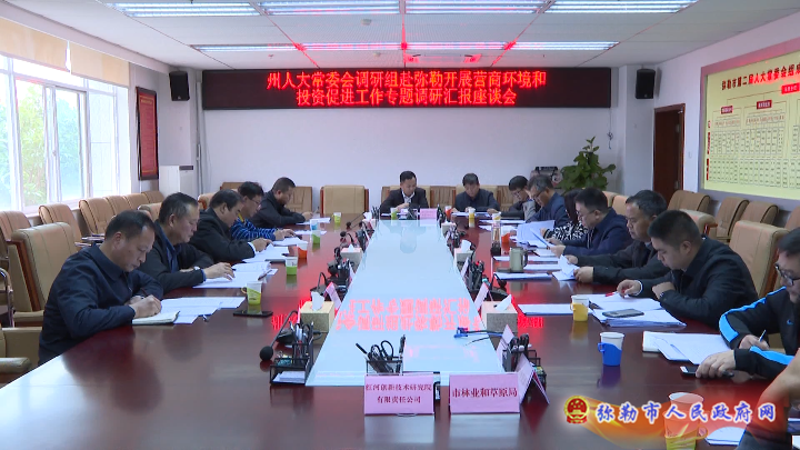 就进一步做好全市营商环境和投资促进工作,调研组要求,要紧紧围绕省委、省政府“三张牌”战略部署和州委、州政府“六个大抓”工作要求,牢固树立“大招商促进大发展理念”,充分发挥弥勒的资源优势、政策优势、区位优势,不断提高全市招商引资竞争力;要认真总结招商引资经验、丰富招商引资内容、完善招商引资方式,为“十四五”开好局起好步奠定良好基础;要补短板,强弱项,建立规范有序的政策体系,加强政策解读和宣传力度,注重企业经营环境建设,解决好企业的堵点难点问题;要着力增强人大监督实效,做到善监督、敢监督,推动全市营商环境和投资促进工作取得实效,为全市经济社会实现高质量跨越式发展提供有力保障。