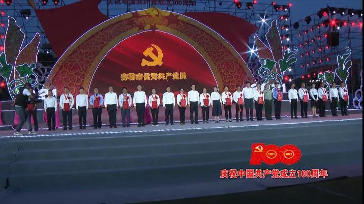 在隆重庆祝中国共产党成立100周年之际,市委对14名老党员代表颁发“光荣在党50年”纪念章。并对全市50名优秀共产党员、50名优秀党务工作者和30个先进基层党组织予以表彰。大会上,受表彰的先进集体和先进个人代表先后上台领奖。