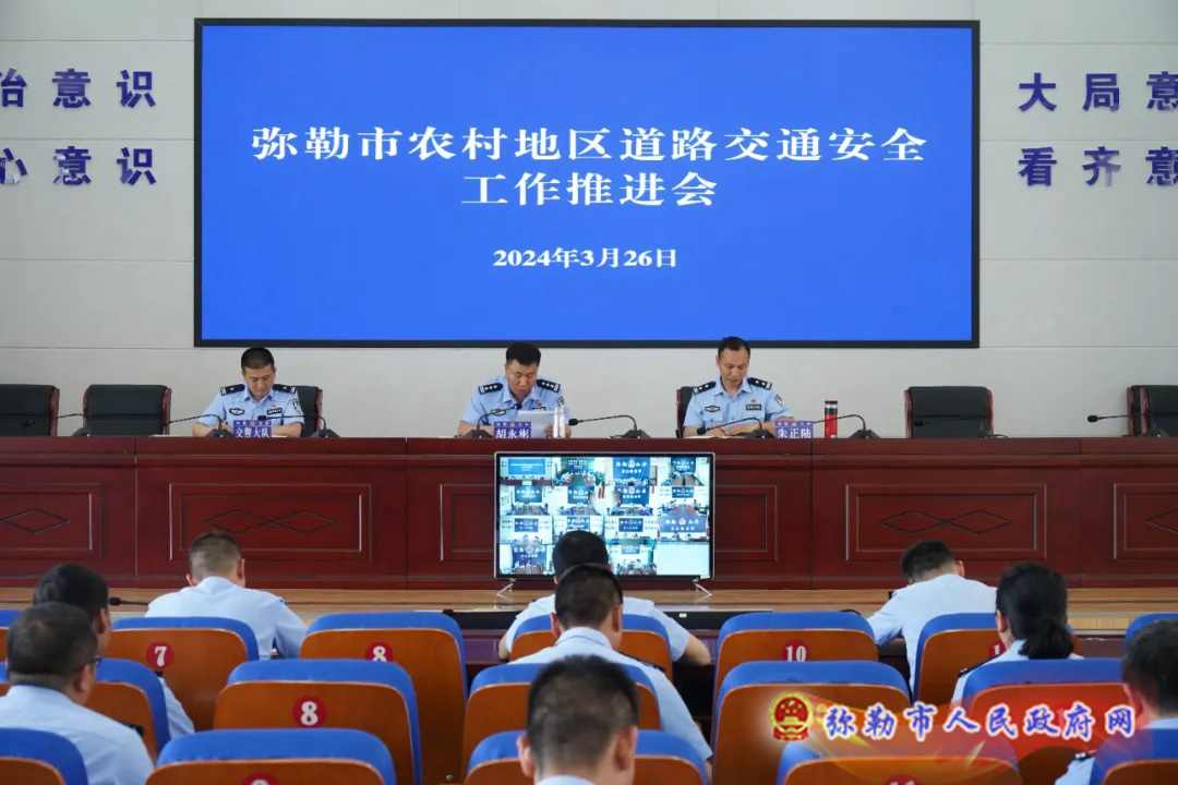 3月26日上午,全州“一县市一试点”工作暨农村地区道路交通安全管理工作推进会结束后,弥勒市人民政府副市长、市交安委主任、市公安局局长胡永彬主持召开弥勒市农村地区道路交通安全工作推进会,对贯彻落实全州会议精神及《云南省压降农村道路交通事故六条措施任务清单》,全面组织开展农村地区道路交通安全综合整治工作进行部署强调。市公安局朱正陆副局长、各部门主要领导、交警大队大中队领导在市局会场参会,各乡镇主要领导、派出所所长等在乡镇分会场参会。