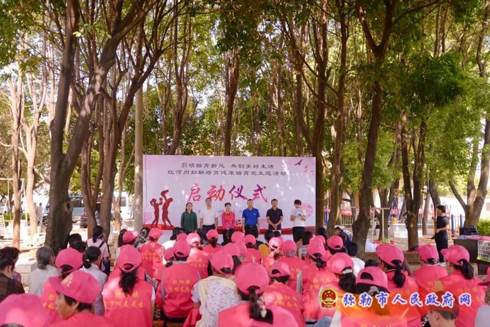 8月28日,红河州妇联培育健康婚育主题活动现场启动仪式在弥勒市弥阳镇东红村举行,红河州妇联党组书记、主席陈薇,弥勒市人民政府副市长、市妇儿工委主任胡伟及全州十三县市妇联相关负责人参加启动仪式。