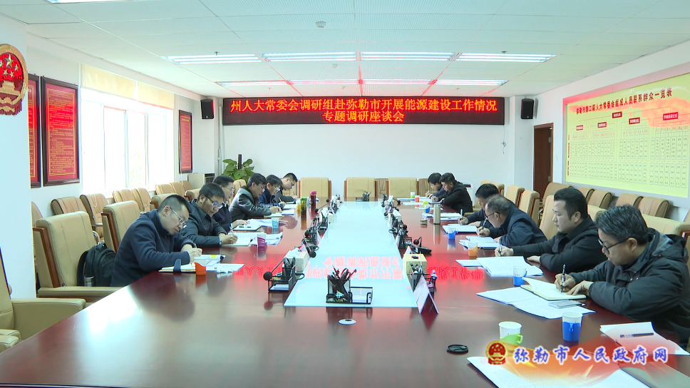 2月19日至20日,州人大常委会主任普绍忠率调研组到弥勒市开展能源建设工作情况专题调研,弥勒市人大常委会党组书记、主任候选人马金荣,市人大常委会副主任李晓路,市人民政府副市长胡伟等陪同调研或出席座谈会。