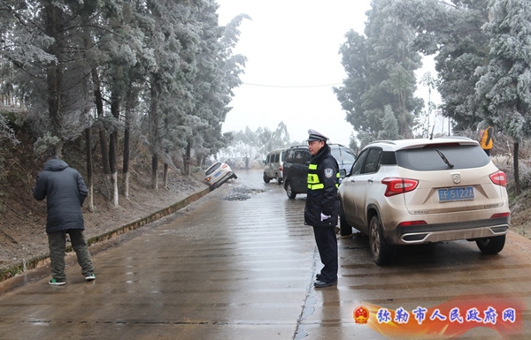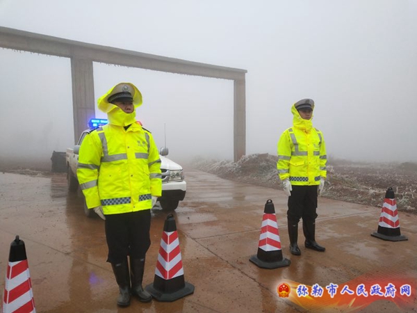 2月1日春运启动以来,弥勒气温持续走低,气象部门发布了《寒潮黄色预警》和《道路结冰黄色预警》。2月4日、5日,东山、西一等高海拔地区气温降至零下4℃,大雾弥漫,冰凌满树,秀河线西三大麦地路段、新新线东山路段、弥小线黑泥凹路段、泸弥高速黑桃沟路段飘凌星子,风坡、风口道路路面结冰。弥勒市公安局交警大队、泸弥高速公路交巡警大队、各派出所交警中队采取多项措施积极应对,加强路面巡管和应急处置,全力保障交通安全。