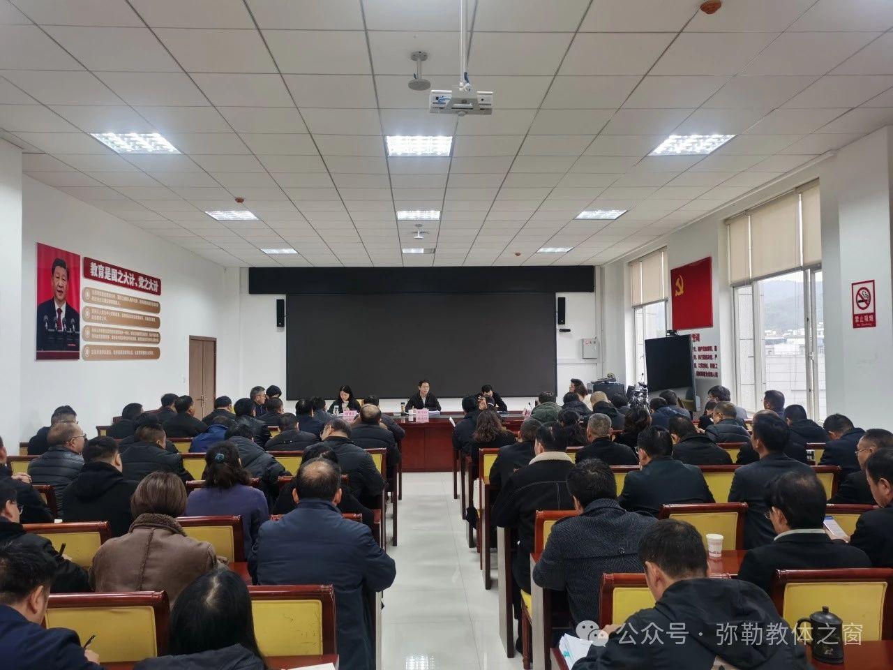 会议指出,习近平总书记的重要讲话为新时代教育工作指明了前进方向、提供了根本遵循。全市教育系统要把思想和行动统一到习近平总书记重要讲话精神和党中央决策部署上来,全面落实省、州、市工作要求,全力推动全市教育事业高质量发展。一要在优先发展教育事业上坚定不移。“抓教育就是抓发展,谋教育就是谋未来”,做到组织领导、政策措施、资源投入“三个优先”。二要在促进教育公平上坚定不移。以资源优先配置促公平,普惠改革促公平,改革创新促公平。三要在提高教育质量上坚定不移。注重教师队伍建设,培养有理想信念、有道德情操、有扎实学识、有仁爱之心的“四有”好老师;注重创新教学方法,紧跟课程改革步伐,锚定立德树人根本任务;注重集团化办学。四要在服务发展大局上坚定不移。基础教育要更加注重培养学生综合素质:学前教育要狠抓优质普惠,增加公办园数量,提高公办幼儿园在园幼儿占比,提高办园质量;义务教育要抓好优质均衡,丰富优质教育资源,逐渐缩小校际差距;高中教育要主抓破除县中困境,要根据“集团化办学”和《弥勒市教育“十百千工程”实施方案(试行)》等文件要求,推动弥勒高中教育高质量发展;特殊教育要主抓向学前和高中两端延伸;专门教育要主抓教育和矫治;职业教育要主抓产教融合。五要在增强教育发展动力上坚定不移。要压实党政主体责任,落实“党政同责办教育”“让懂教育的人管教育”“像抓脱贫攻坚一样抓基础教育”;要鼓励社会力量办学,激发学校发展动力。