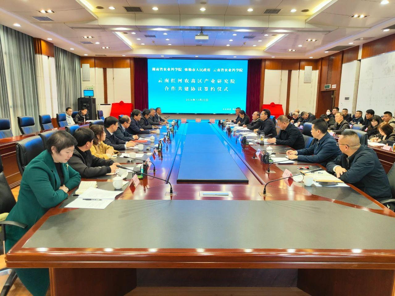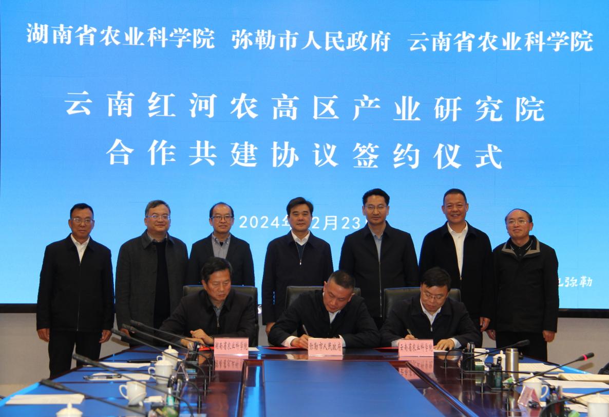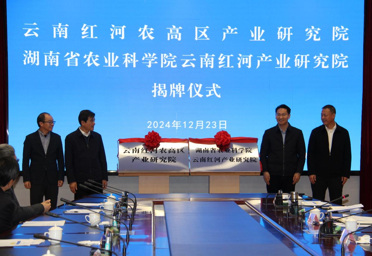 12月23日,由弥勒市人民政府、湖南省农业科学院、云南省农业科学院合作共建的云南红河农高区产业研究院在红河州弥勒市签约揭牌,为推动红河州农业产业高质量发展开辟新赛道、注入新动能。