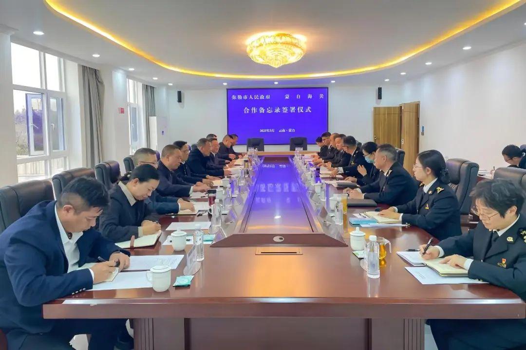 会谈后,市人民政府与蒙自海关签署促进外贸高水平开放高质量发展合作备忘录。