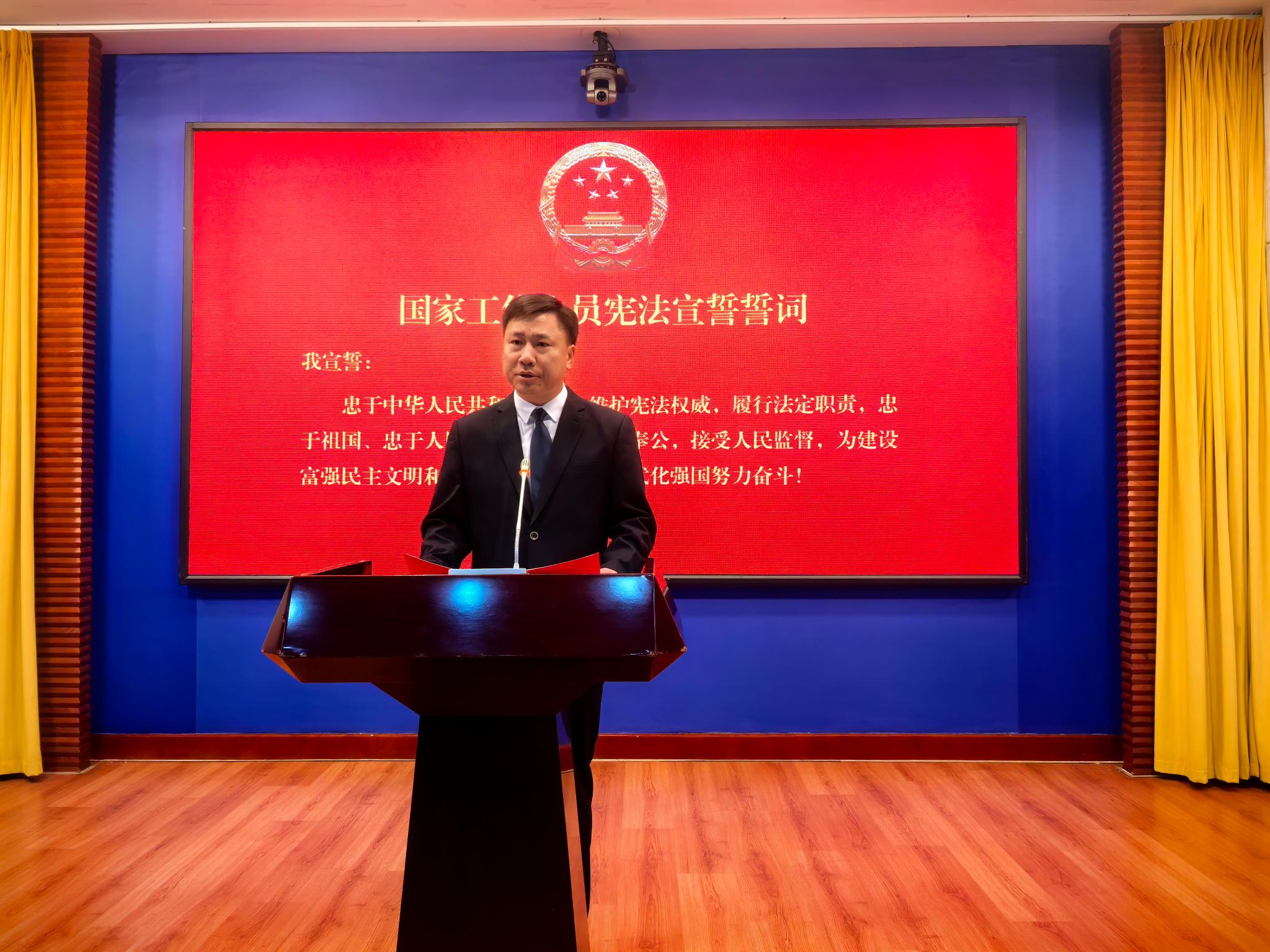 今年12月4日是第十二个国家宪法日。为全面贯彻落实习近平法治思想,弘扬宪法精神,维护宪法权威,根据《中华人民共和国宪法》《全国人民代表大会常务委员会关于实行宪法宣誓制度的决定》,按照《弥勒市实行宪法宣誓制度组织办法》《弥勒市人民政府及其各部门任命的国家工作人员宪法宣誓组织办法》,弥勒市人民政府举行国家工作人员2025年宪法宣誓仪式,市政府副市长、市公安局局长胡永彬出席宣誓仪式并监誓。