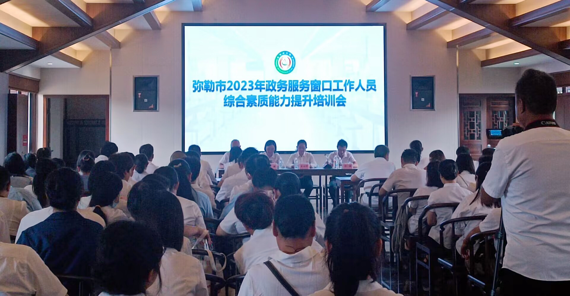 为深入推进我市政务服务标准化建设,进一步转作风、提效率,树立良好政务服务形象,让更多企业和群众享受到更加优质高效的政务服务。7月8日,弥勒市政务服务管理局举办2023年政务服务窗口工作人员综合素质能力提升专题培训会,结合政务服务领域“优化营商环境主题党日”活动,组织政务服务窗口工作人员集中学习《云南省优化营商环境条例》,传达云南省作风革命效能革命会议精神,开展政务服务窗口工作人员廉政教育,并邀请高级礼仪培训师刘姝君老师授课,市政务服务中心窗口及各乡镇(街道)140余名工作人员参加培训。