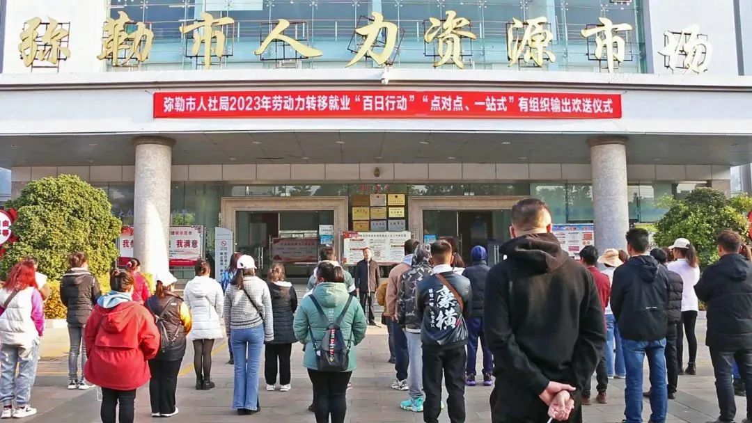 近日,弥勒市在市人社局举行农村劳动力转移就业“百日行动”“点对点、一站式”有组织输出欢送仪式,为103名务工人员提供集中“点对点”输转服务,让务工人员实现“出家门、上车门、进厂门”无缝衔接,确保务工人员安全、快捷、有序返岗。
