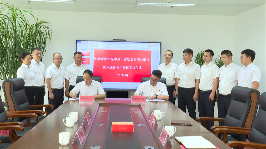 9月21日,弥勒市医疗保障局与弥勒农村商业银行签订医保服务合作协议,成为云南省首家推行医保经办业务“医银合作”示范点。协议的签订,将破解参保群众办理医保业务跑办路程远、等候时间长等问题,充分发挥“医银”合作在医保业务“放管服”改革中的优势,促进全市医疗保障服务效能提升。