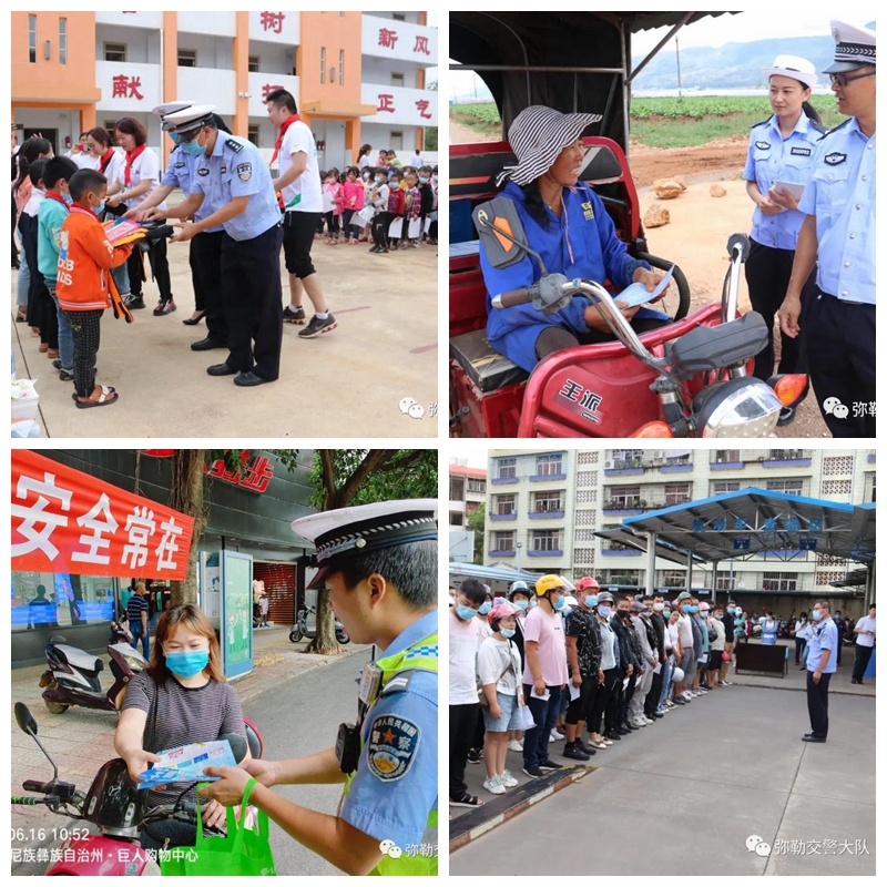 6月16日“全国安全宣传咨询日”,弥勒市公安局交警大队多形式组织开展交通安全集中宣传活动,共发放各类宣传单1200份、宣传小扇子400把。