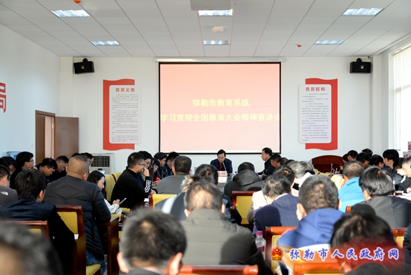 12月5日上午,弥勒市教育局召开全市中小学、幼儿园党总支书记、党支部书记、校(园)长工作会议,市委教育工委书记、市教育局局长卢正坪出席会议并讲话。市教育局领导班子成员、局机关各科室负责人,全市中小学、幼儿园党总支书记、党支部书记、校(园)长,分管安全工作的校领导共90余人参加了会议。