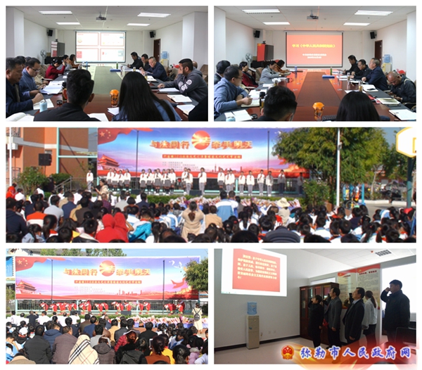 为在全市营造“尊崇宪法、学习宪法、遵守宪法、维护宪法、运用宪法”的良好氛围,推动宪法宣传教育形成热潮,在第五个国家宪法日到来之际,弥勒市委政法委、市法院、市公安局、市司法局、市教育局、竹园镇等部门和乡镇形式多样大力开展宪法宣传活动,为第五个“12·4”国家宪法日发声发力。