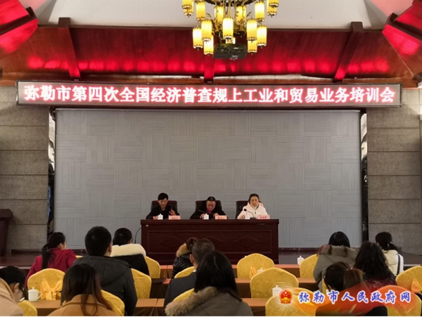 1月10日,弥勒市召开第四次全国经济普查规上工业和贸易业务培训会,市统计局副局长杨光云主持会议,市工商信局副局长苗文忠、市农科局副局长任志萍受邀出席会议,全市规上工业、贸易专业统计人员80余人参加了培训。