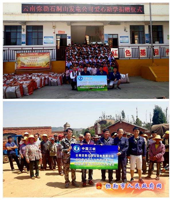 云南弥勒石洞山发电有限公司向弥勒市五山乡则居村贫困群众及学校捐赠爱心物资的善举,是企业履行社会责任、践行党中央、国务院精准扶贫号召的集中体现,深受当地群众和师生的高度赞扬,激发了贫困群众脱贫致富的信心,激励着贫困山区莘莘学子化感恩之情为动力,珍惜时光、奋发学习的决心。