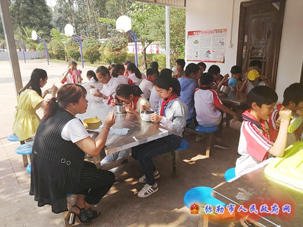 弥勒市建立健全学校集中用餐陪餐制度,在所有食堂供餐学校全面推行教师用餐陪餐,采取每天安排至少1名校领导、1名值日教师轮流陪同学生一起排队打饭用餐、互相沟通交流等方式,将就餐文化融入学生行为习惯,学校及时了解学生对食堂饭菜质量和服务的评价和满意度,进一步改进办餐质量,增进师生感情;对师生集中用餐就餐采取定期抽查、日常监督、长效跟踪等管理,实时监督食堂卫生和从业人员服务情况,扎紧校园食品安全“篱笆”。