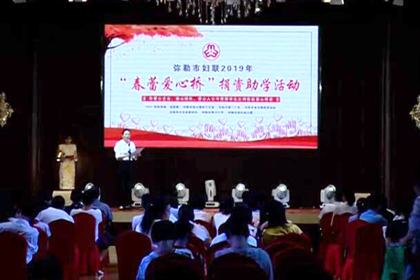 8月2日,弥勒市妇联举办2019年春蕾爱心桥捐资助学活动。州妇联副主席罗丽莉,市人大常委会副主任伏燕,市政协副主席赵学磊等出席活动,并为爱心企业、爱心人士赠送锦旗。