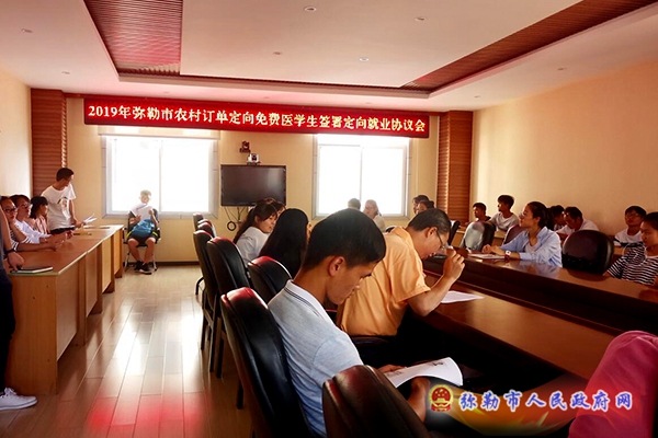 8月13日,市卫生健康局召开2019年弥勒市农村订单定向免费医学生签署定向就业协议会,与33位农村订单定向免费医学生签署定向就业协议。