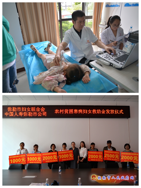 弥勒市积极筹集各类公益资金帮助贫困妇女儿童,并重点向建档立卡贫困户倾斜,以“腊月暖冬行动”和六一儿童节等为契机,对贫病妇女儿童进行慰问关爱。一是全面完成2019年农村妇女“两癌”免费筛查任务,其中HPV5000例、乳腺癌4197例;二是开展国寿“女性团体安康保险”投保工作,共投保3143人,收缴保费42.28万元;三是积极争取项目,开展先天性心脏病儿童筛查工作,为全市234名儿童进行复查及筛查,为符合手术条件的38名患儿申请项目补助和免费手术治疗,现已完成手术治疗25人;四是定期开展“两癌”救助、妇女健康知识、孕检暨母婴健康知识讲座等活动;五是常态化开展春蕾爱心桥捐资助学活动,累计募集资金22.5万元帮助全市229名贫困学生顺利完成学业。