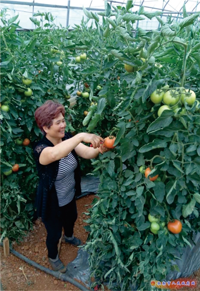 图为农户正在采摘番茄