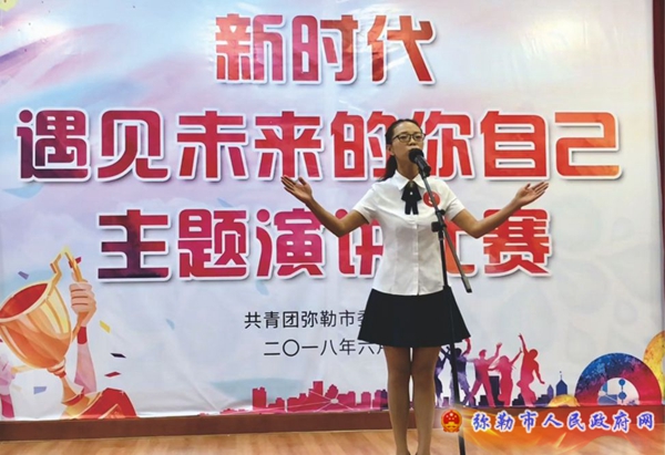 6月11日至12日团市委举办云岭青年大学习“新时代遇见未来的你自己”主题演讲比赛。来自各乡镇、企事业单位及学校的88名选手经过紧张的角逐,东风农场管理局的选手张露获取了青年组冠军;弥勒一中选手高鹏获得中学组冠军;庆来学校的选手罗玉缘荣获小学组冠军。演讲中,选手们自信大方、充满激情,描绘着未来在不同的行业、不同领域奋斗的自己,展示了“少年智则国智,少年强则国强”的精神风貌,体现了青年及学生们追梦的决心与信念。