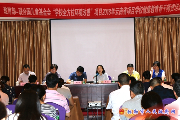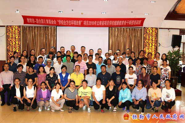 2018年7月9日至12日,弥勒市承办了教育部—联合国儿童基金会“学校全方位环境改善项目”2018年云南省项目学校健康教育骨干师资培训班。联合国儿童基金会项目官员郝志明先生、云南省教育厅体卫艺处主任科员陈露、红河州教育局体卫艺专干季洪,来自全国五县市教育局领导、项目管理专干,以及剑川县、弥勒市健康教育骨干教师共70余人参加了培训活动。