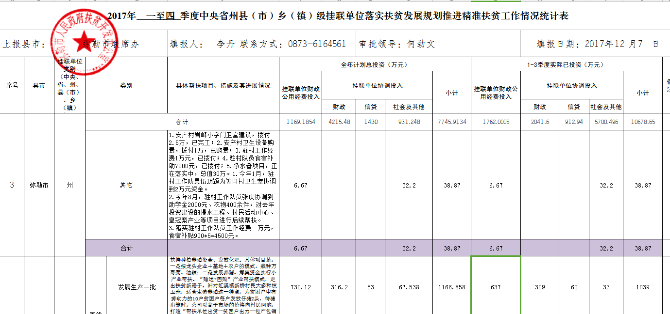 2017年,31位市级领导、98家单位和部门、22支驻村工作队,21家非公企业、共3525人参与挂钩联系帮扶工作。1-12月,实际投入帮扶资金10678.65万元,落实帮扶项目564件。其中,挂联单位、挂包干部投入10417.04万元,21家非公企业投入261.61万元,实现了对贫困村、贫困人口挂联帮扶全覆盖。