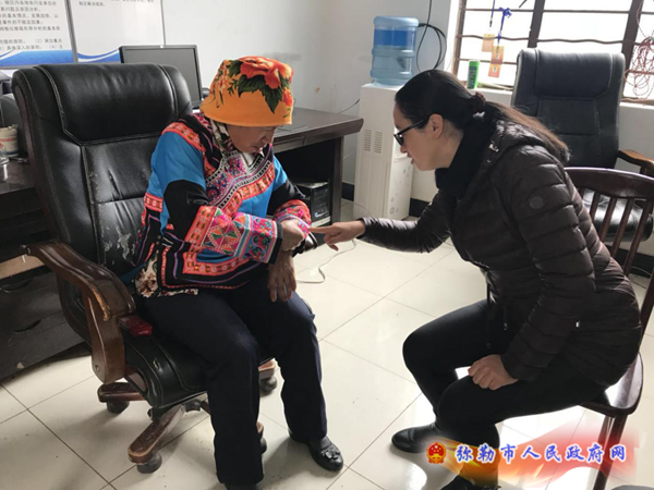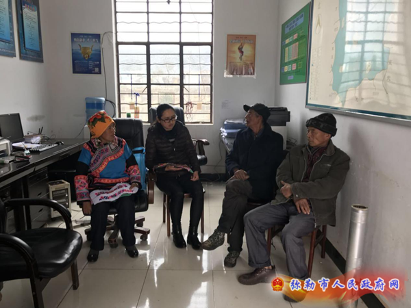 1月30日,市委常委、统战部部长毕晓红到巡检司镇高甸村委会看望了高甸村委会彝族阿哲毕摩经传承人普国安、石炳林和彝族阿哲服饰制作传承人李赵仙。