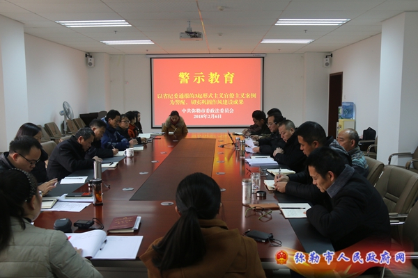 2月6日下午,弥勒市委政法委召开党支部会议,传达了省纪委关于3起形式主义官僚主义案例的通报及党的十九届二中全会精神。市委常委、市委政法委书记张俊忠参加会议。
