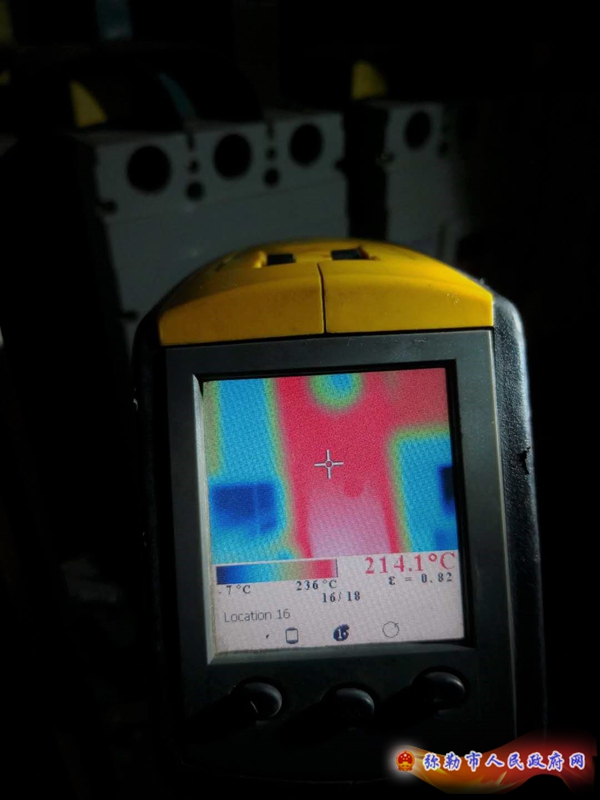 经工作人员现场用红外测温仪测量,客户变压器器身温度高达113.2度,低压出线母牌温度214.1度,人站在变压器周围能明显感觉到热度。